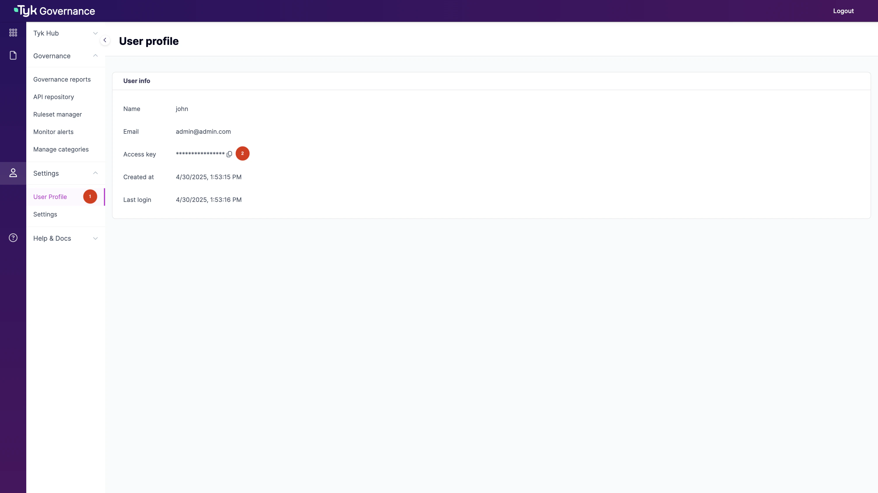 - URL to access the Tyk Governance Hub